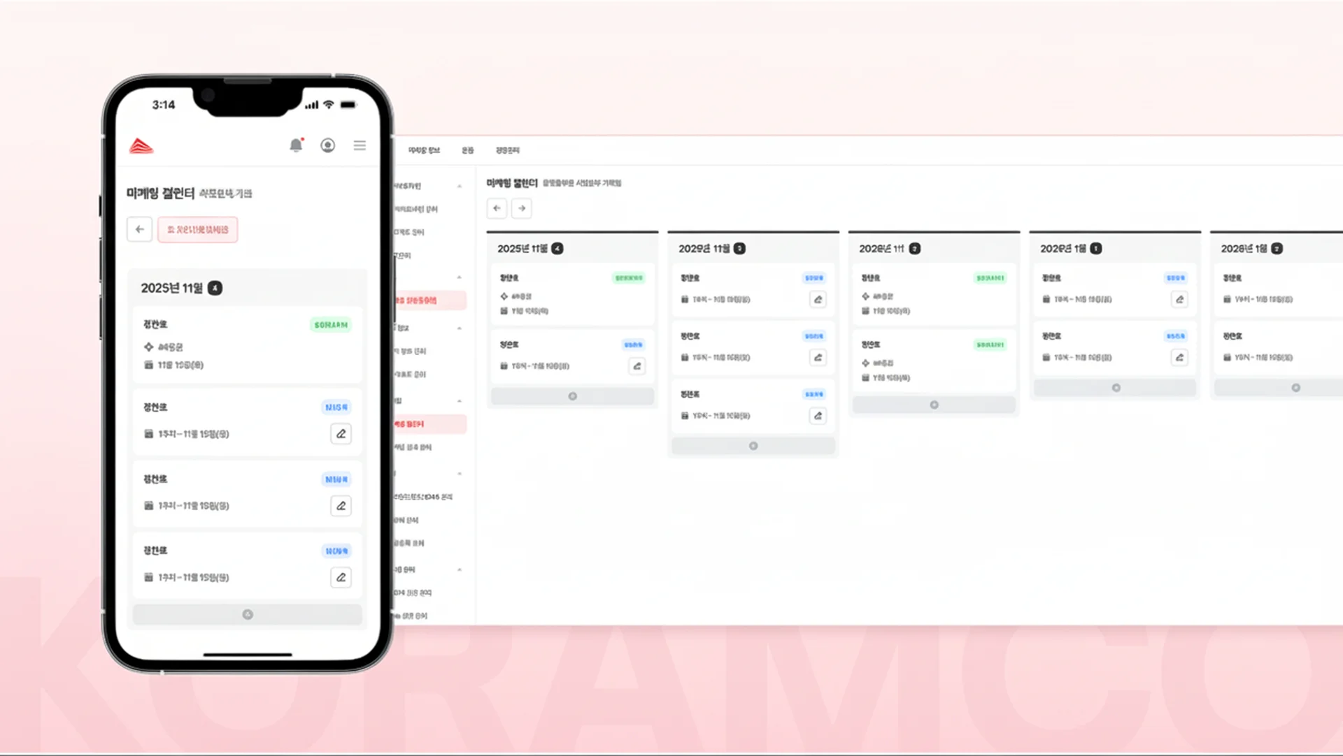 마케팅 일정 관리 기능도 포함했습니다. 실무자는 자신이 생성한 마케팅만 볼 수 있고, 관리자는 모든 실무자의 현황을 한눈에 파악할 수 있습니다. 권한 관리가 세밀하게 적용된 덕분에 보안과 효율성을 동시에 잡았습니다.