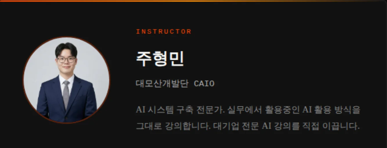 강의 전문가가 아닌, 현직 AI 개발자가 직접 짠 커리큘럼입니다. 수차례 실습형 강의를 진행하며 검증했고, 개발 경험이 없는 초보자도 강의 당일 결과물을 완성할 수 있도록 막히는 구간은 현장에서 바로 함께 해결합니다. 실무에서 활용 중인 AI 방식 그대로, 대기업 전문 AI 강의를 직접 이끌어온 전문가가 진행합니다.