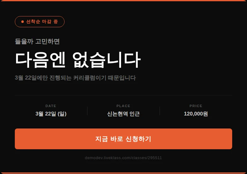 현역 개발자의 AI 바이브코딩 강의를 들을 수 있는 기회, 흔치 않습니다. 마감 전에 자리 확보하세요.