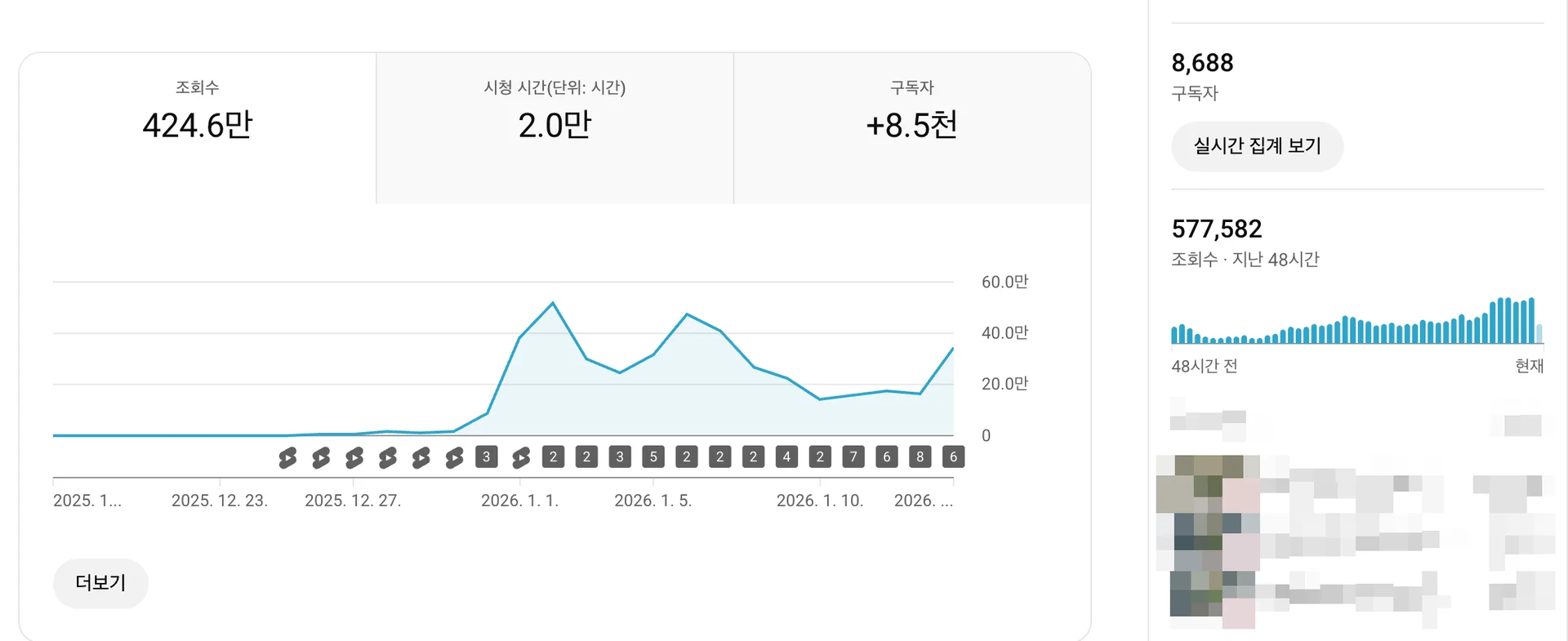 저희가 자체 개발한 AI 쇼츠 자동화 프로그램으로 유튜브 채널을 운영한 결과, 단 2주 만에 구독자 8,000명 이상을 달성했습니다. 직접 만든 기술로 직접 성과를 증명한 것입니다.