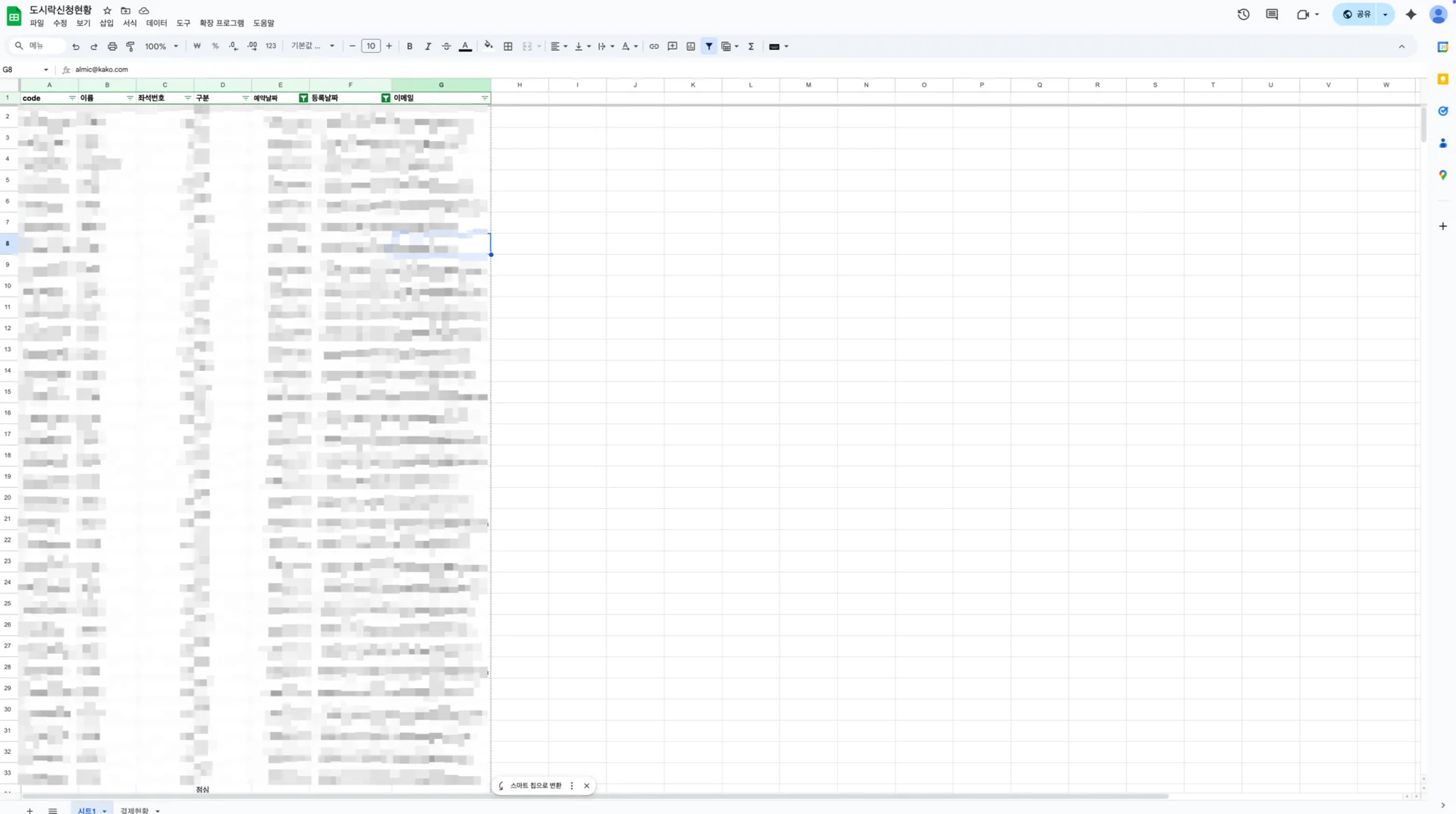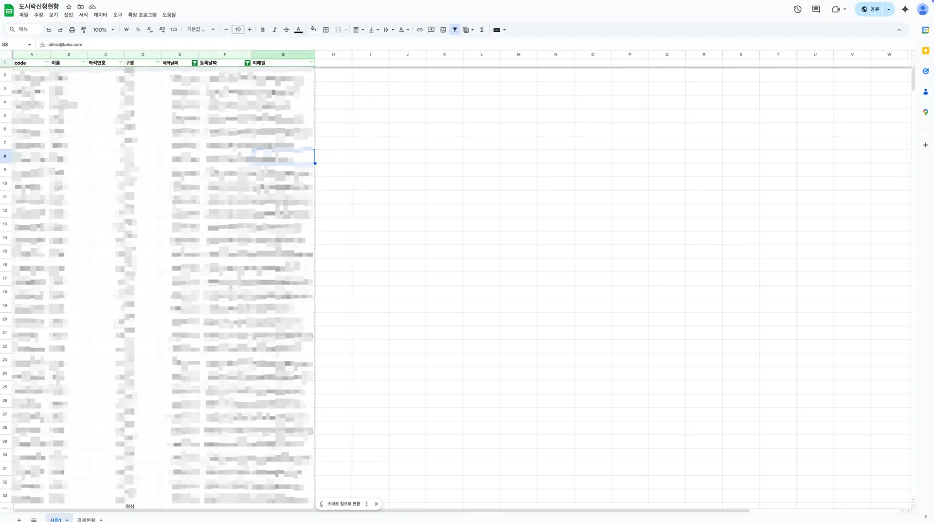 되는시간 사용 엑셀 시트에 데이터가 자동으로 수집이 됩니다.