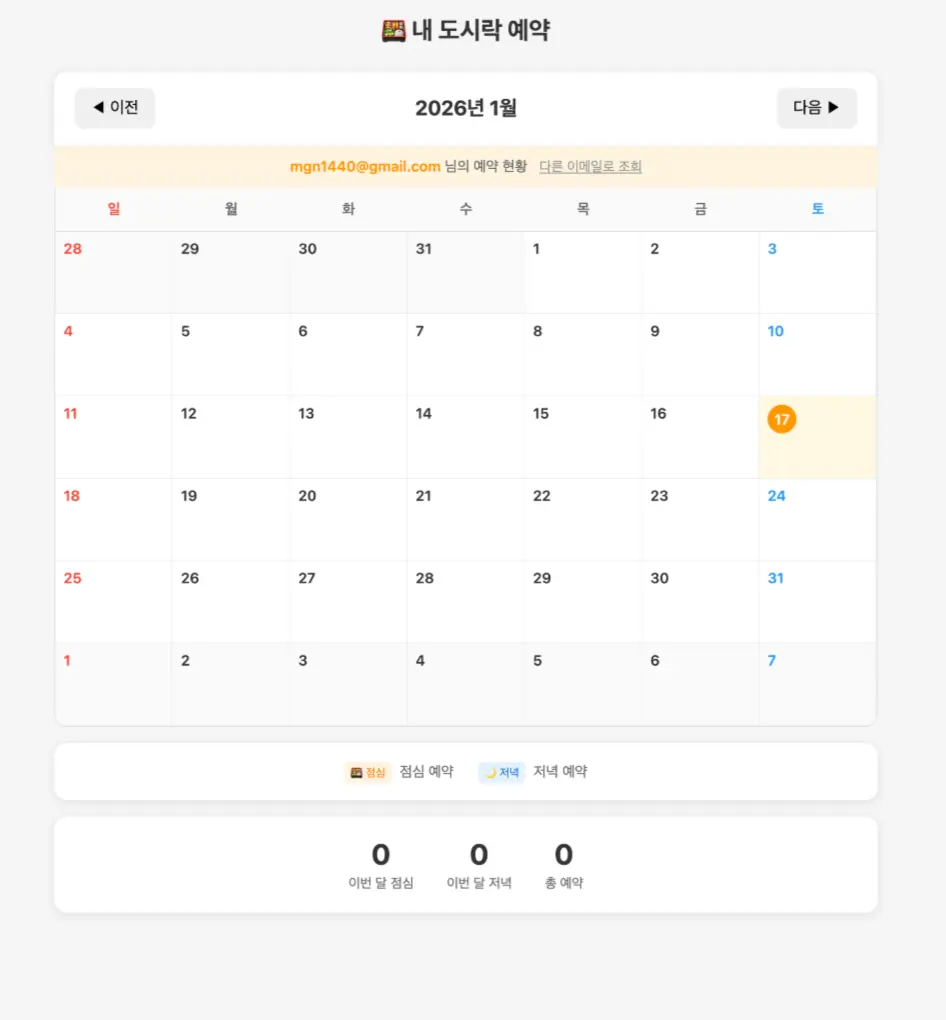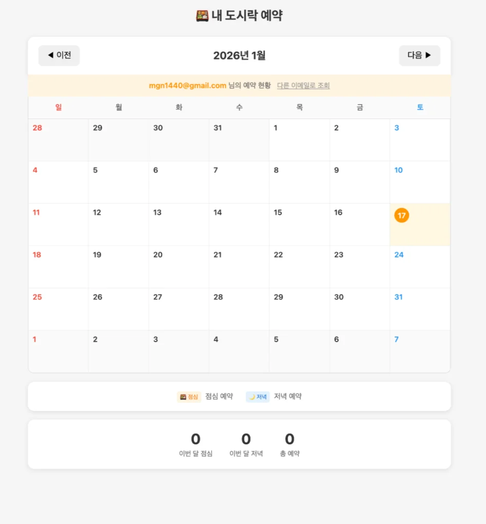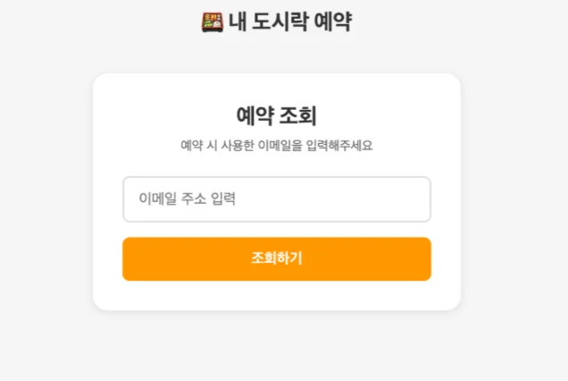 학생 분들이 본인이 주문한 도시락을 보고싶은 니즈가 있다고 요청주셔서 웹 화면까지 만들어드렸습니다.
