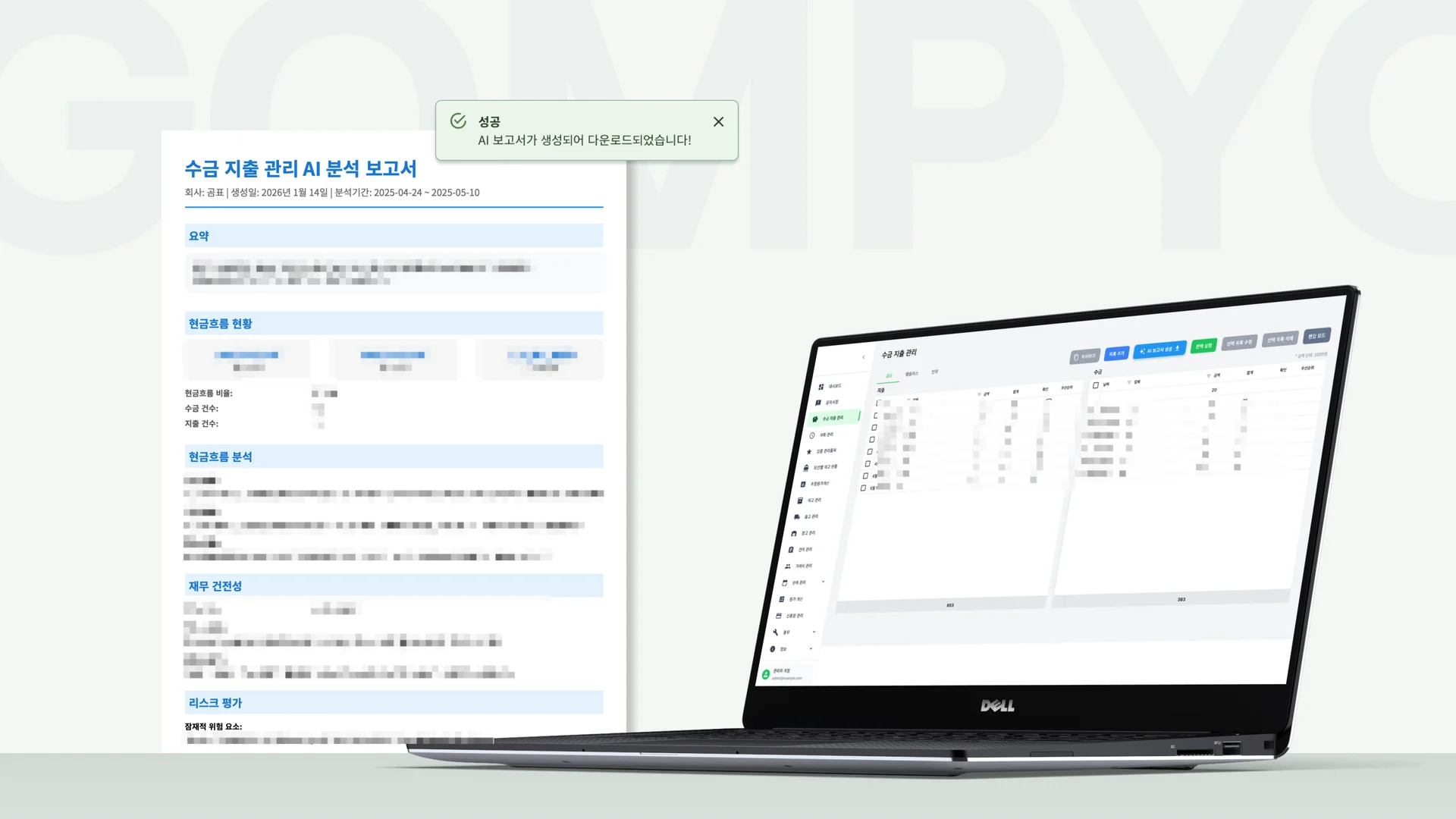 셋째, 수금·지출 관리에 AI 보고서 기능까지 더했습니다.
